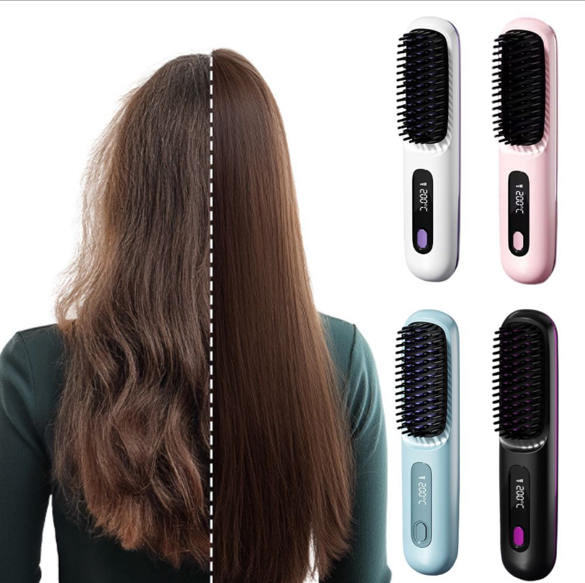 Avec notre Brosse lissante vous trouverez les accessoires suivant inclus dans l'emballage : Trousse de rangement, pratique pour emporter votre brosse en voyage ou pour la stocker en toute sécurité. Cable de chargement USB, une paire de peigne ,une paire d'attache épingle. Un guide détaillé du mode d'emploi.
